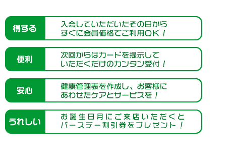 スタンプ20個で50分コースを1回サービスさせていただきます。